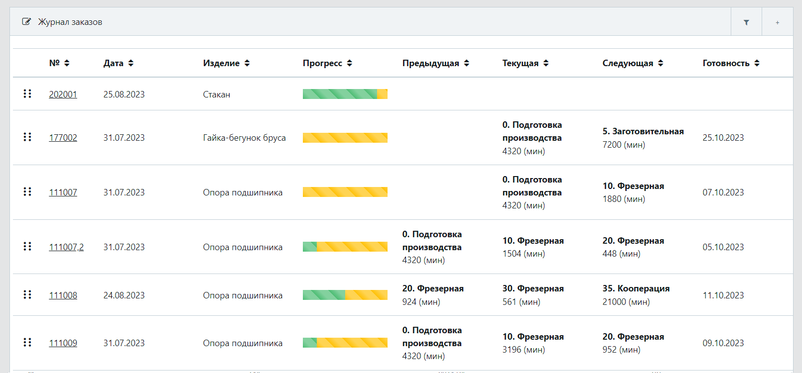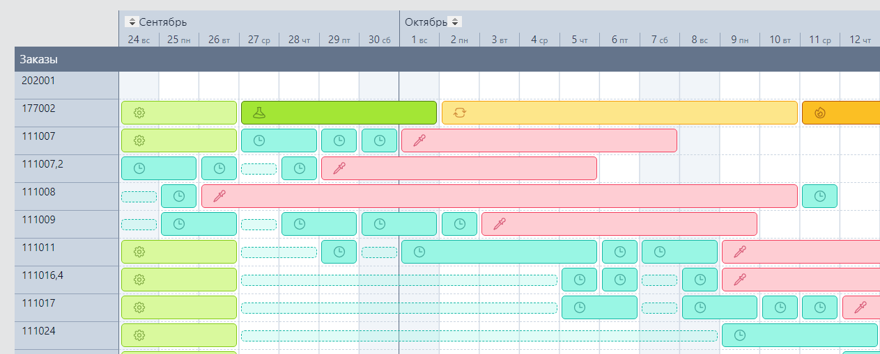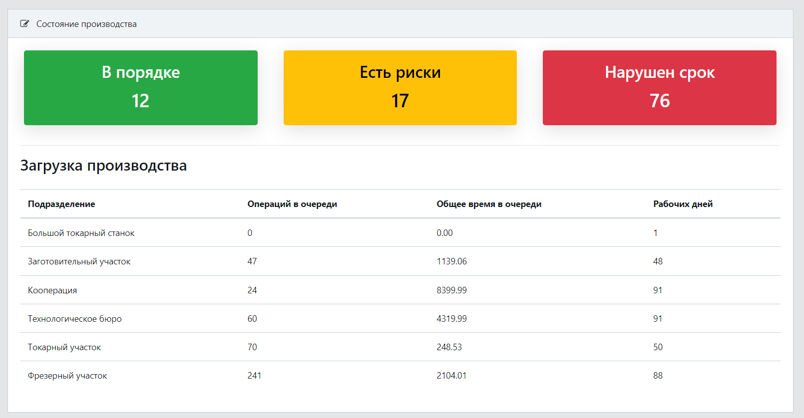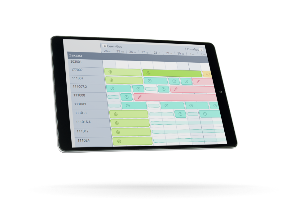Система покажет реальные сроки изготовления с учетом очереди заказов и производительности подразделений, покажет проблемы со сроками заранее.