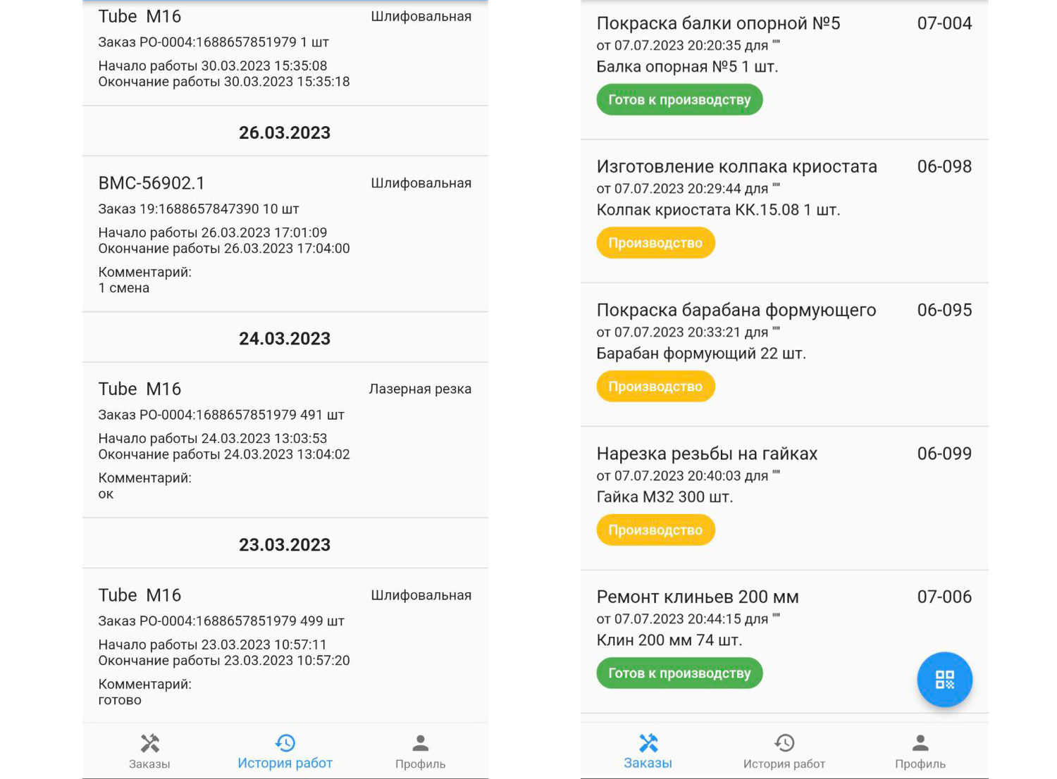 Учет работы сотрудников по каждой операции с помощью мобильного приложения для исполнителей, служб подготовки производства и ОТК. Используя QR код, можно легко встроиться в привычные процессы.